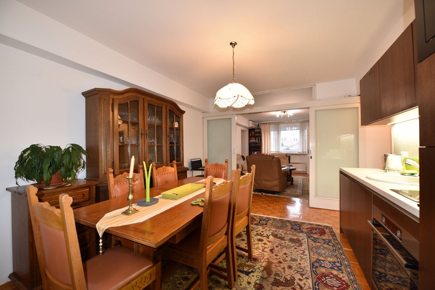 Vanjska stolarija je PVC, unutrašnja stolarija je drvena. Podne obloge su parket i keramika.
