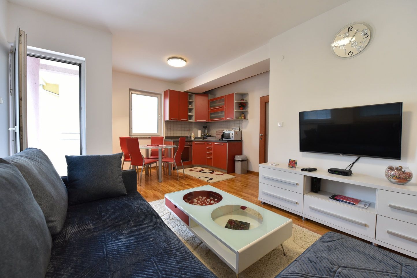 Sastoji se od: dnevnog boravka sa kuhinjom i trpezarijom sa izlazom na balkon, jedne spavaće sobe, kupatila i hodnika.