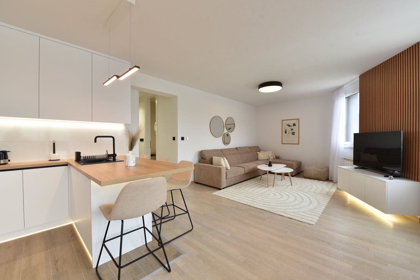 Iznajmljuje se dvosoban opremljen stan sa garažom u novogradnji, ukupne površine 66 m2.
