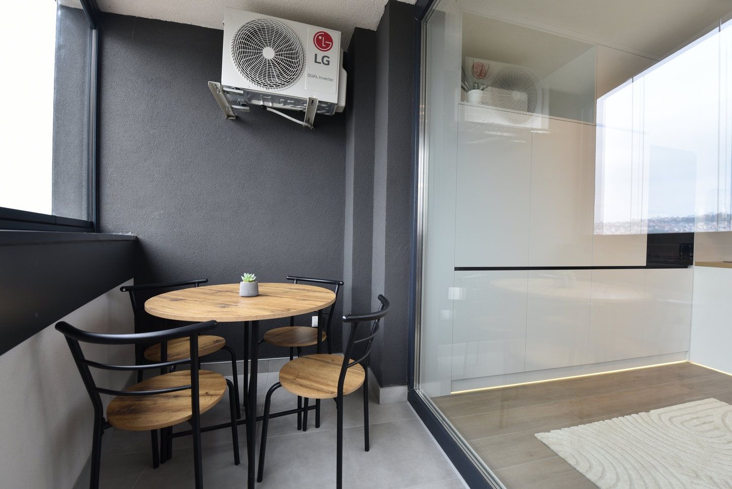 Sastoji se od: dnevnog boravka sa kuhinjom i trpezarijom, prostrane spavaće sobe, balkona/lođe, kupatila i ulaznog hodnika.