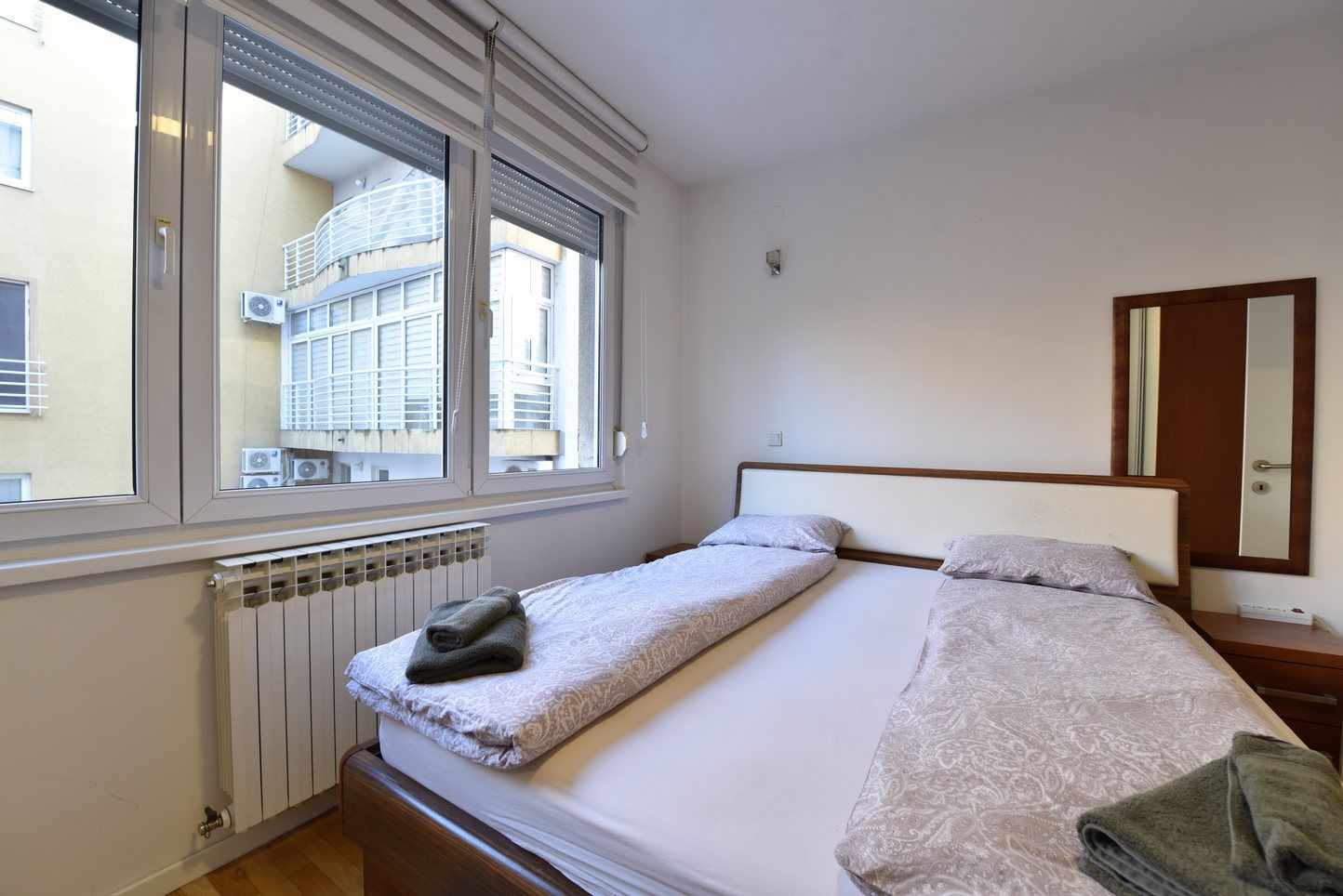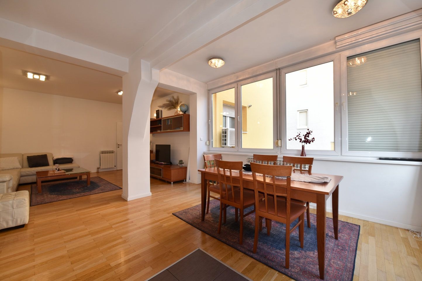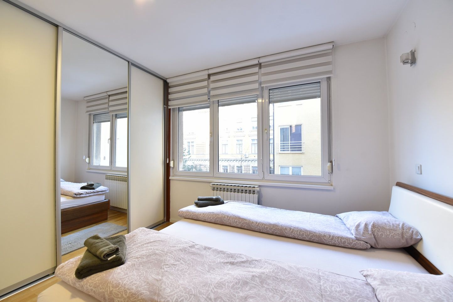 Sastoji se od: prosrtanog dnevnog boravka sa kuhinjom i trpezarijom, dvije spavaće, kupatila i ulaznog hodnika. Stan je kompletno opremljen i namješten.