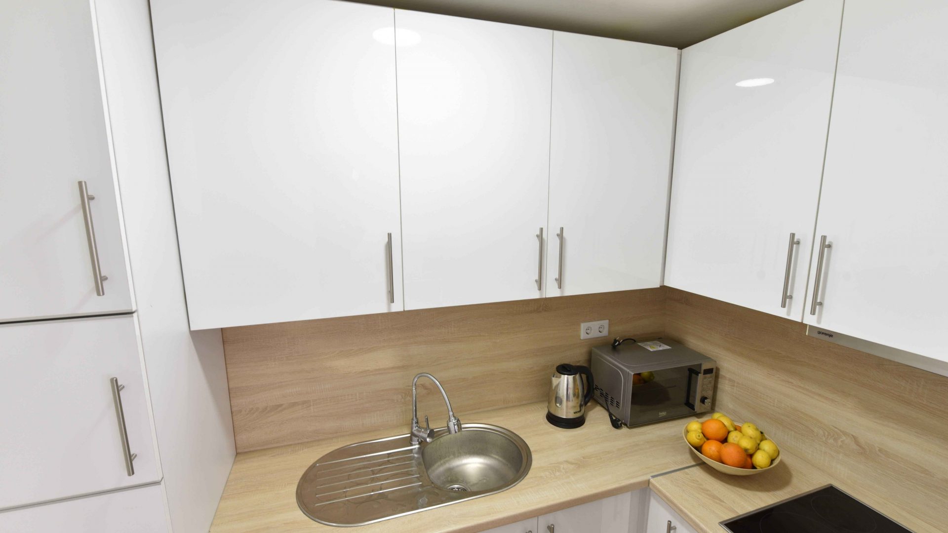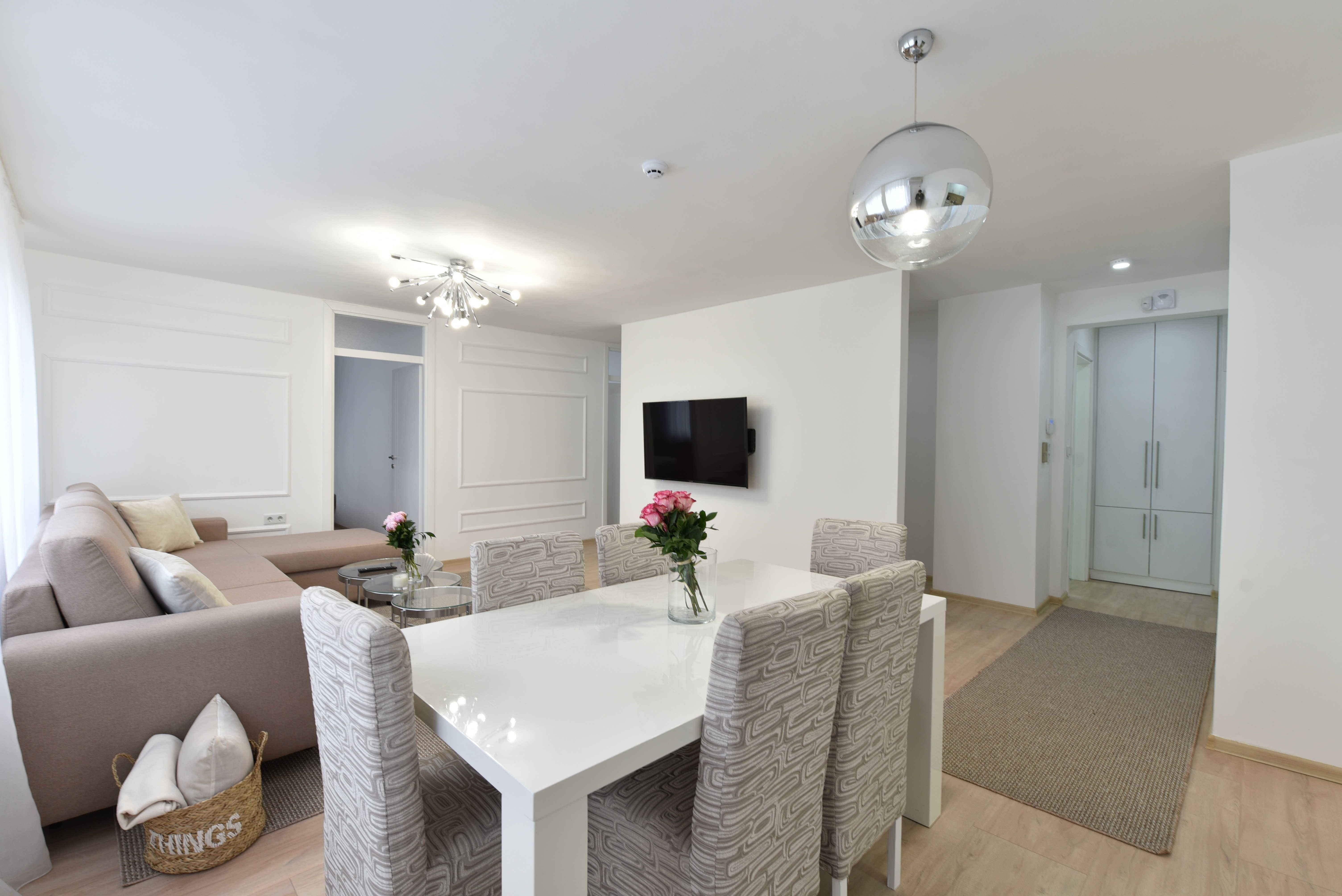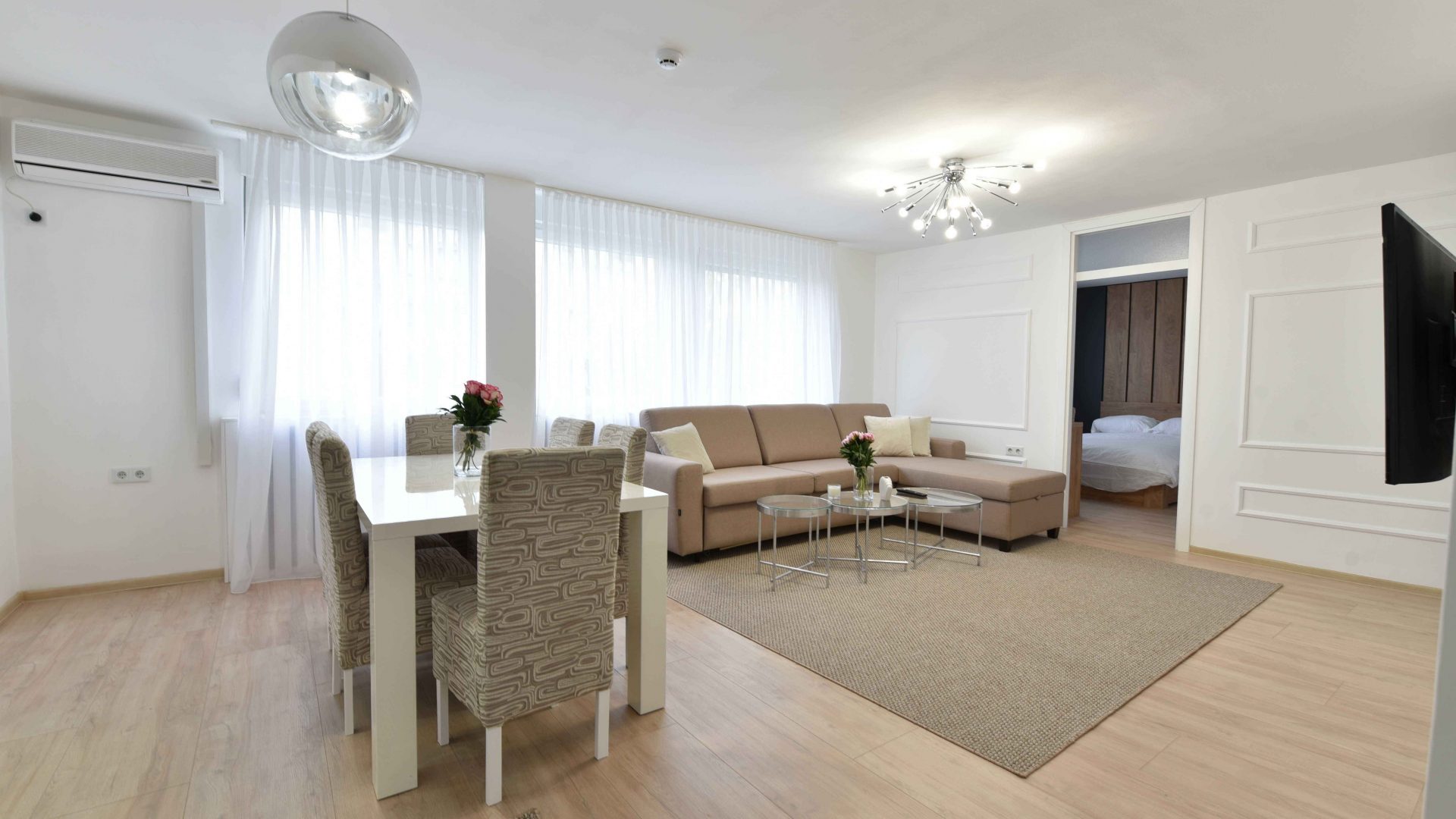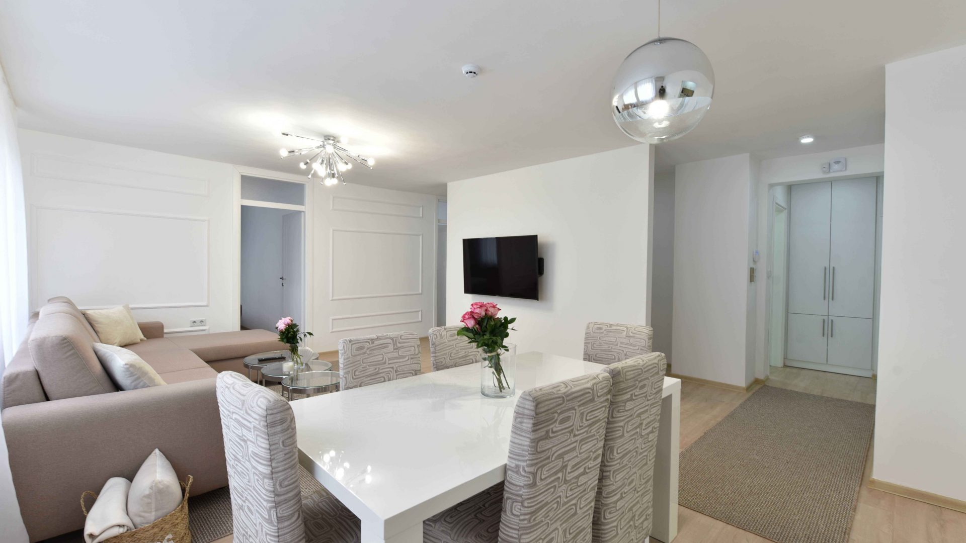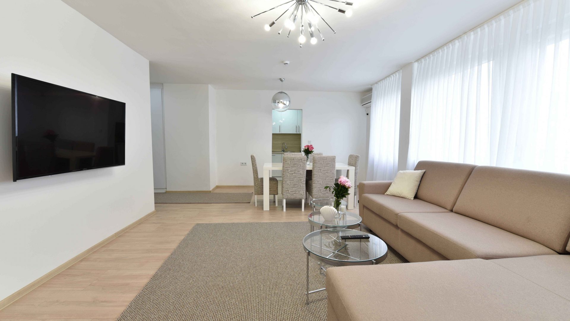 Stan je opremljen i namješten sa modernim potpuno novim namještajem.